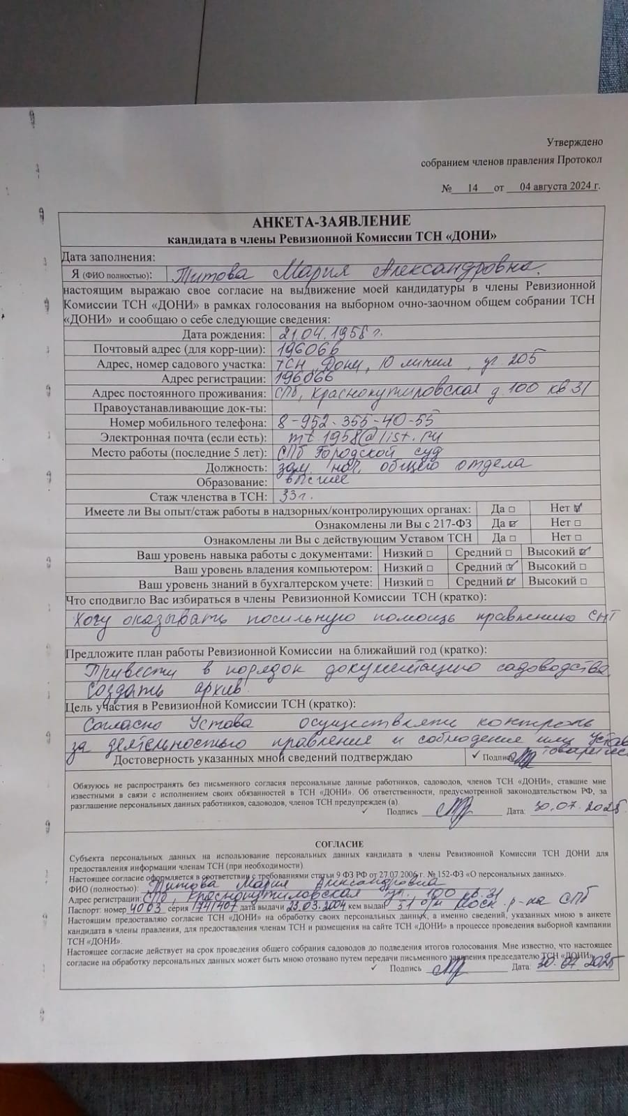Если обнаружили неточности или не согласны с данными, свяжитесь с председателем или Соколовой Ольгой Александровной.