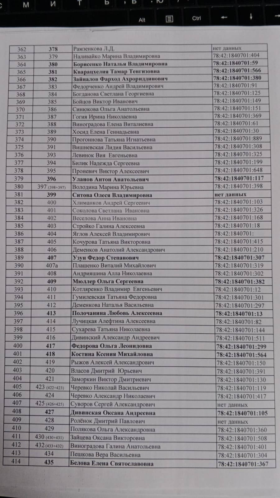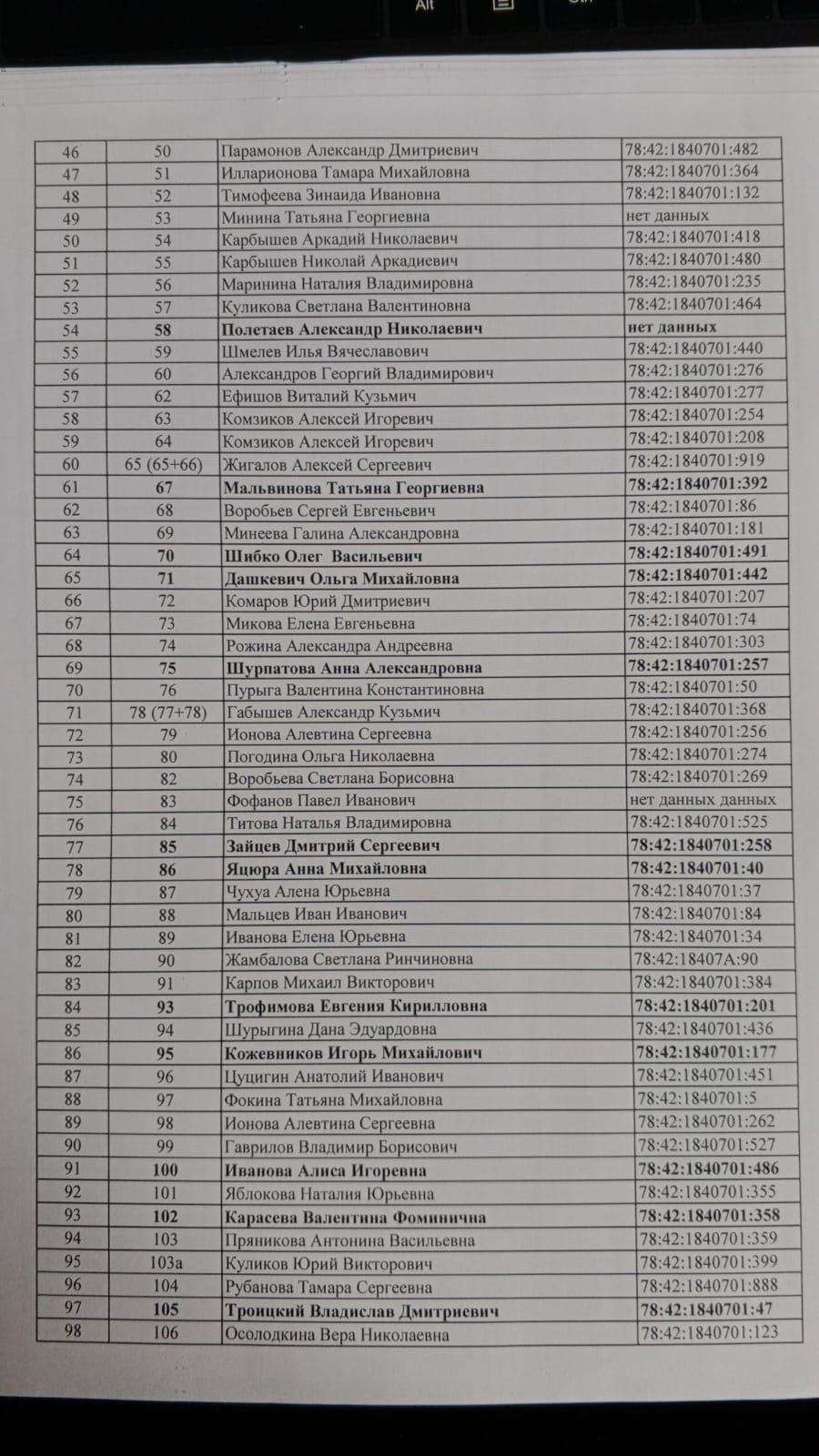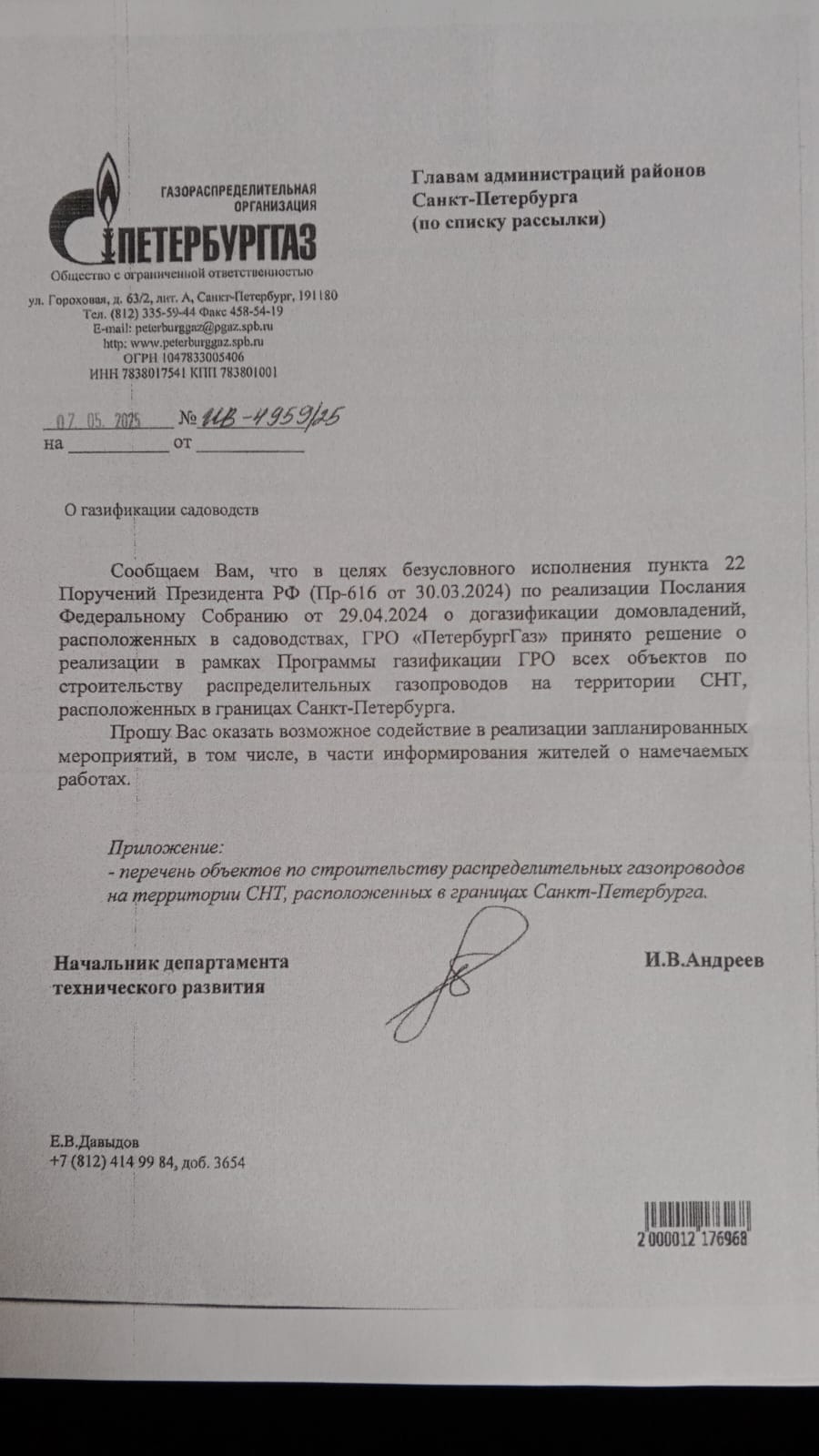 ВАЖНО: необходимо проверить верность заполнения кадастрового номера в реестре расположенном ниже. Реестр мы будем подавать в "ПетрбургГаз".