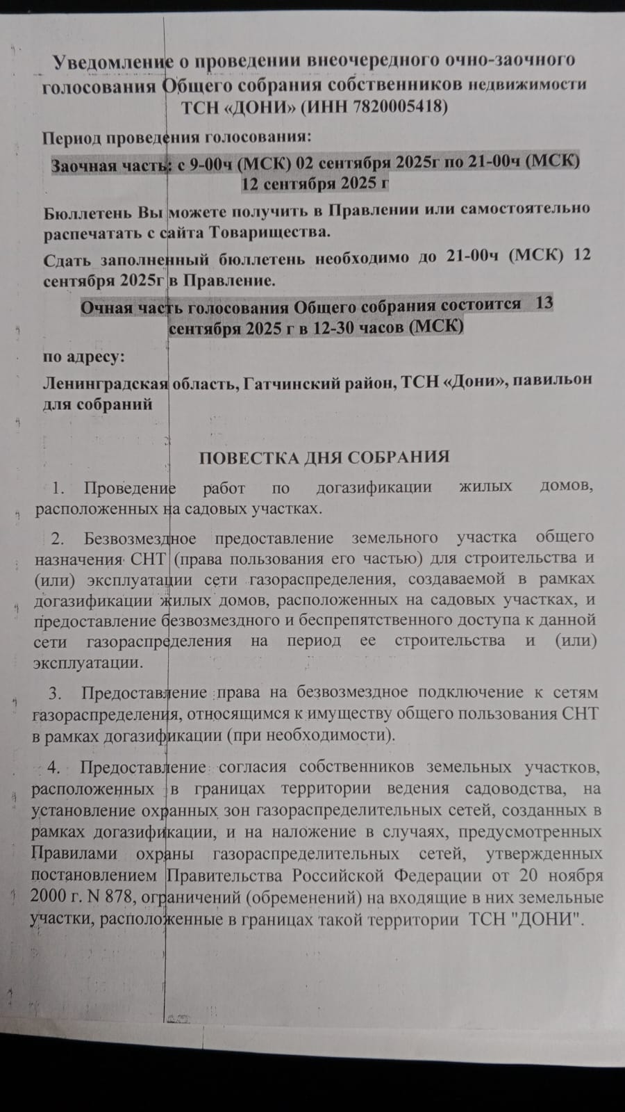 Также в правление необходимо передать кадастровый номер строения (жилого дома) к которому будет производится подключение. Без этой информации вас не включат в список в первую волну подключения.